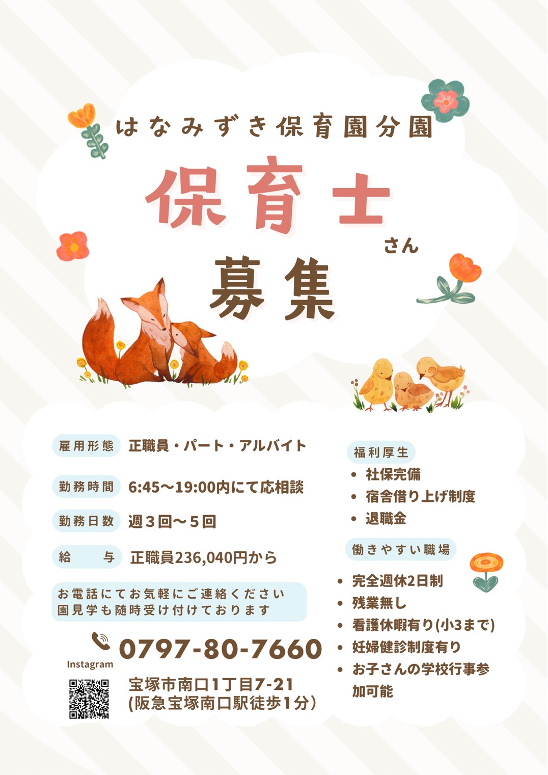 保育士さん募集中、正社員・ロングパートさん(直接お申込みで就労祝金支給)